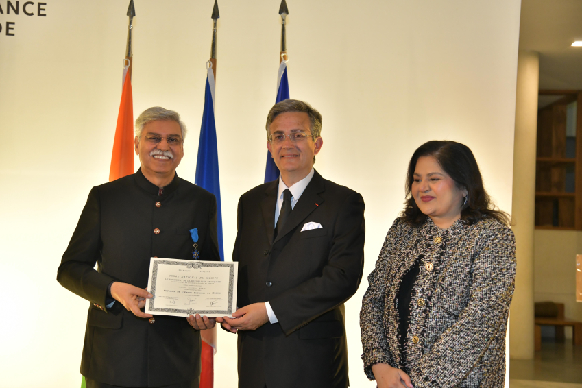 The Ambassador of France to India, H.E. Mr Thierry Mathou, today conferred the insignia of Chevalier de l’Ordre national du Mérite (Knight of the National Order of Merit) on Mr Sunil Kant Munjal, Chairman of Hero Enterprise and Founder of the Serendipity Arts Foundation.